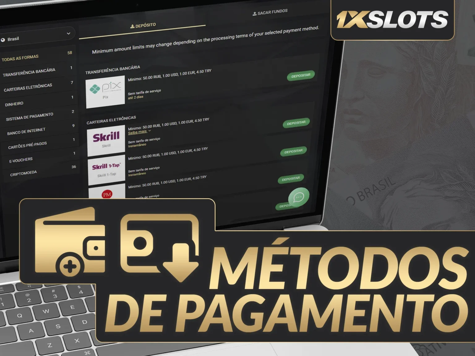 Para facilitar suas transações, o 1xslots disponibiliza diversas opções de pagamento que se adaptam a todas as preferências. Confira alguns dos métodos mais utilizados: