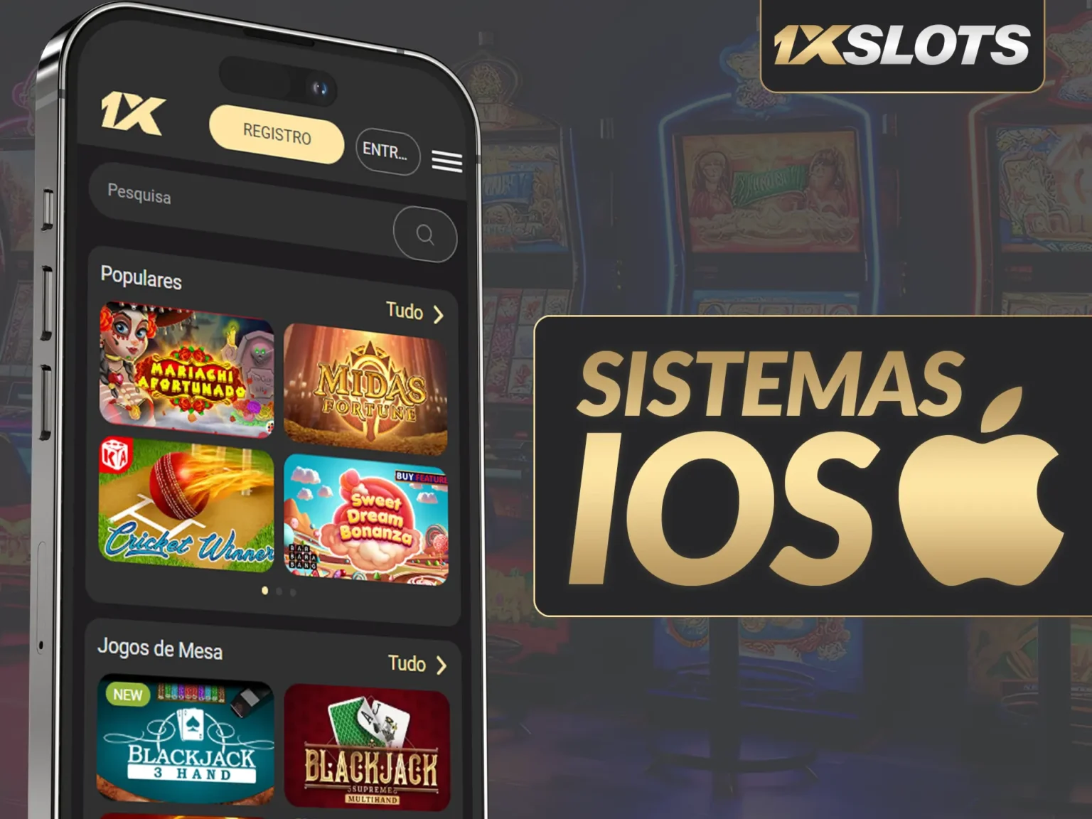 O aplicativo para iOS encontra-se em fase de desenvolvimento. Enquanto isso, usuários de dispositivos Apple podem acessar o 1xslots através da versão móvel do site. Siga este guia simples para jogar via navegador: